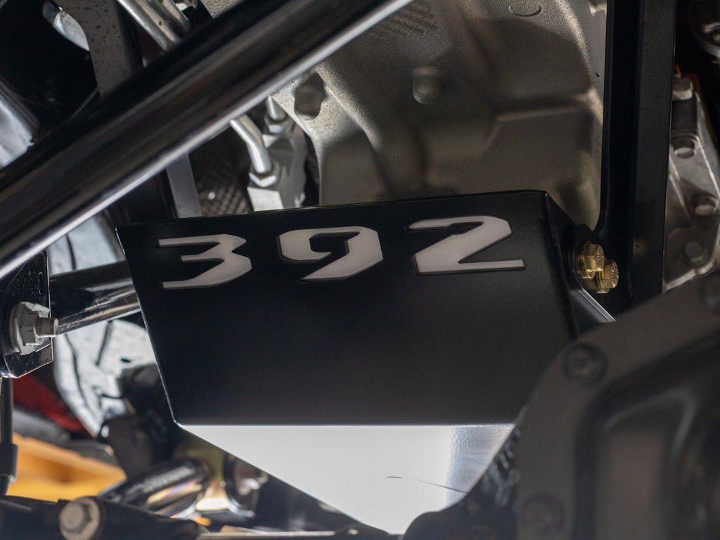 The Rusty's JL Wrangler 392 Hemi Engine Skid is constructed using 3/16” steel. The Rusty's skid has a 4 inch side on the skid to offer almost full protection to the oil pan of the engine. The skid also covers most all of the exhaust down pipe or offers protection while sliding down rocks or stumps. The laser cut "392" logo's give the skid an awesome look and shows the special detail that no one put's into their skids like Rusty's does. To even offer a more special look add a color matched rock light to the inside of the "392" logo and it turns it into a show vehicle.