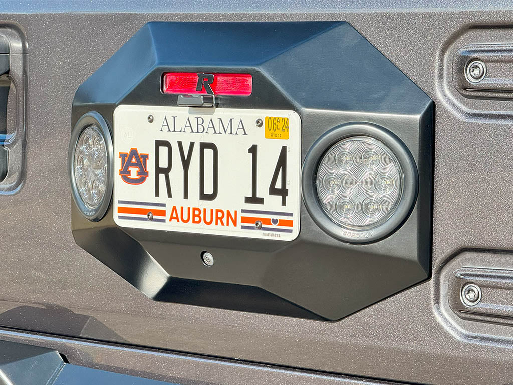 This all-in-one solution allows you to delete the factory spare tire mount while seamlessly relocating your license plate and offers a way to mount 2 back up lights. The mount accepts two 4 inch rubber mounted trailer style lights. The back up lights are not included. Using a 4 inch LED light will light up the back of your vehicle.