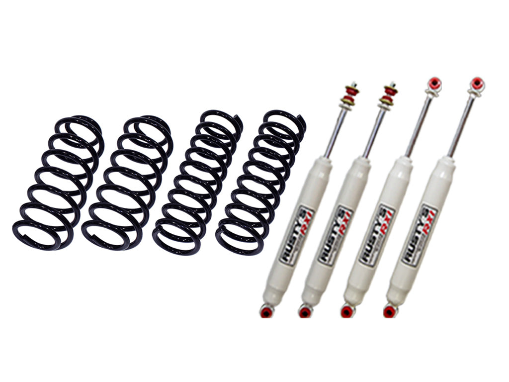 The 2.5" Basic kit includes replacement front and rear coil springs that were designed using computer modeling and then subjected to extensive real-world testing. Rusty's found that the factory coil spring rates were a little too soft and caused the suspension to wallow and bottom-out prematurely when encountering bumps and dips. As a result, the Rusty's coils have spring rates that are 12 lbs heavier than stock. This eliminates the negative factory ride characteristics while providing additional support when the vehicle is fully loaded with people and gear. Rusty's Performance Shocks further improve the ride and handling of these popular vehicles.